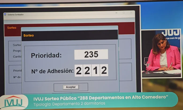 Con transmisión en vivo vía internet, este jueves 4 de diciembre desde las 10h., el IVUJ realizará el Sorteo de Orden de Prelación de la operatoria para demanda libre “Viviendas en San Antonio”, participan 229 postulantes y se podrá ver a través youtube.com/@IVUJVivienda. Las viviendas ya están construidas en la localidad de Los Alisos, B° Ruth Navea.