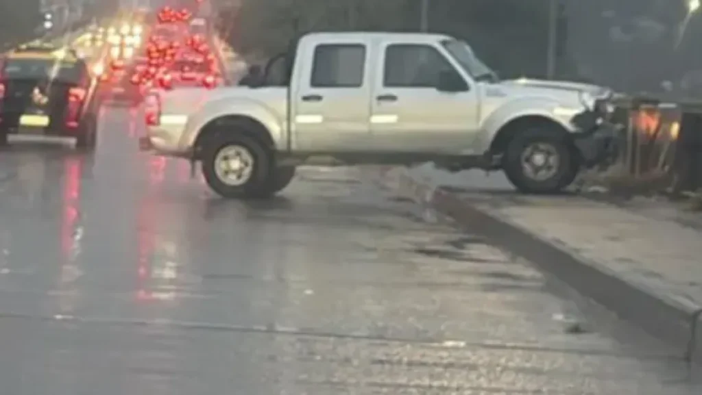 Una camioneta quedó atravesada en el Puente San Martín en medio de la llovizna, provocando complicaciones en la circulación hacia el centro.