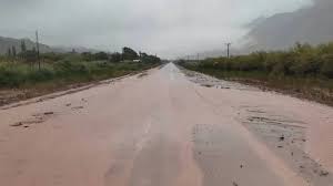 Una de las situaciones más complejas se registra sobre la Ruta nacional 40, a la altura del Río Grande de San Juan, donde la calzada presenta superficie blanda y sectores directamente borrados por el agua.